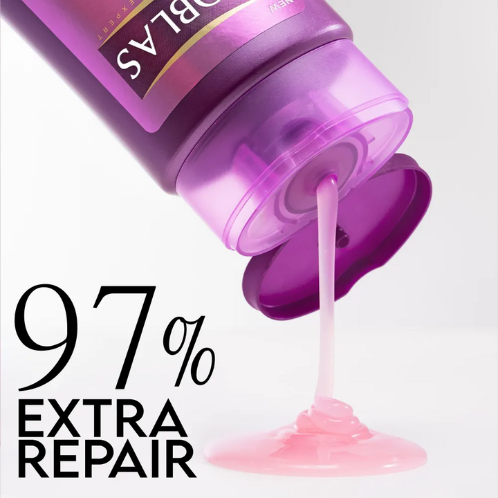 Yes — its restorative formula with keratin and collagen supports damaged or treated hair.